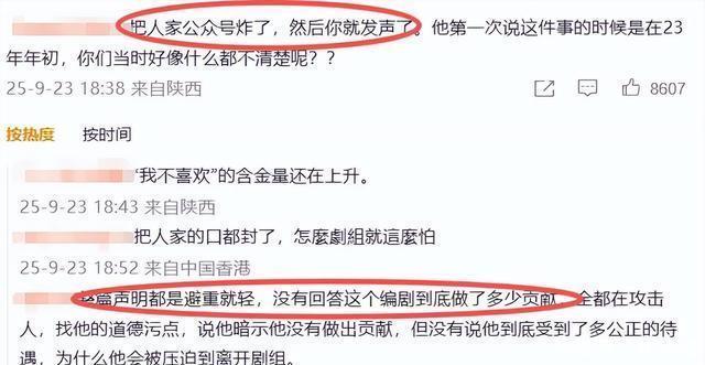 不过网友们已经不好忽悠了。 他们觉得剧组的声明没有说服力。 说录音是私人偷录,但内容明显是剧本讨论会,听起来更像是正常的会议留痕。 又说他自行离开剧组,但没提到前因后果,拿不出具体证据,无从判断是否另有隐情。