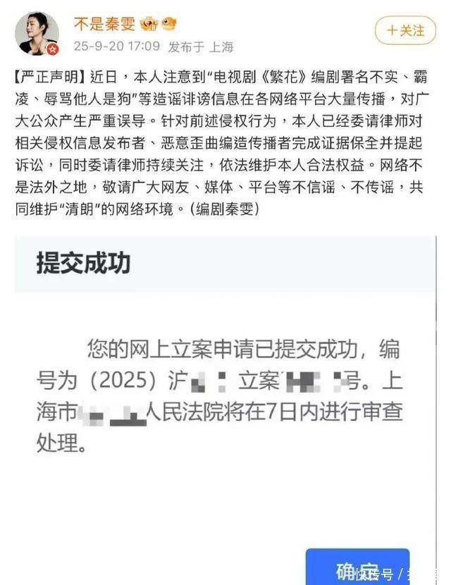 被点名道姓的秦雯也很直白了:“全是造谣诽谤,已经立案起诉。”